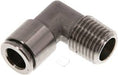 Elbow plug connection, fixed. R 1/4"-8mm, IQS stainless steel